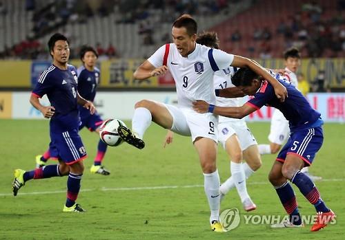 일본이 전반적으로 수비에 치중했고, 특히 지난 2일 북한과의 경기에서 장신 공격수 박현일을 막지 못해 역전패한 학습 효과도 있었다. 일본이 수비수 2명이 김신욱을 에워싸며 볼 점유를 막았다.