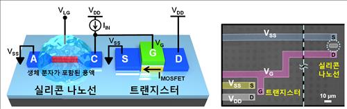 실리콘 나노선-트랜지스터 결합 '고감도 바이오센서' 개발