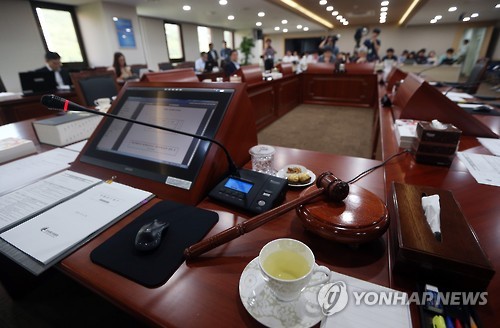 | △ 늦어진 방통위 전체회의 (과천=연합뉴스) 신준희 기자 = 6일 오전 정부과천청사 방송통신위원회에서 최성준 위원장 주재로 열릴 예정이던 전체회의가 시작 시간이 30분 이상 경과함에도 불구하고 늦어지고 있다. 회의는 1시간여 지난 10시께 열렸지만 이날 논의할 예정이었던 KBS 후임 이사 추천에 관한 건은 다음 회의로 미뤄졌다. 2015.8.6 hama@yna.co.kr |