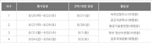 1차 청소년 항공교실은 8월20∼22일, 2차는 8월27∼29일, 3차는 8월31일∼9월2일, 4차는 9월4∼6일 개최된다.