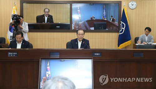 | △ 황우여 부총리, '2015년 제8차 사회관계장관회의' 주재 (서울=연합뉴스) 황우여 사회부총리 겸 교육부 장관이 7일 정부세종청사에서 '2015년 제8차 사회관계장관회의'를 주재하고 있다. (교육부 제공) |