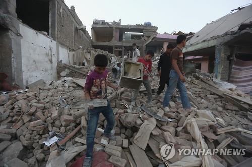 | △ 8일 아프간 카불에서 전날 트럭 폭탄 테러로 부서진 집에서 한 소년이 잔해를 뒤지고 있다.(AP=연합뉴스) |