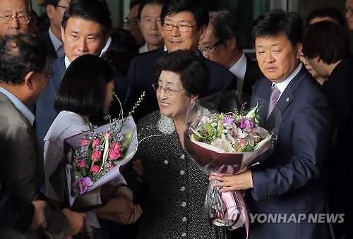 (서울=연합뉴스) 김호준 황철환 기자 = 김대중 전 대통령의 부인인 이희호 여사가 8일 3박 4일간의 방북 일정을 마치고 귀국했다.