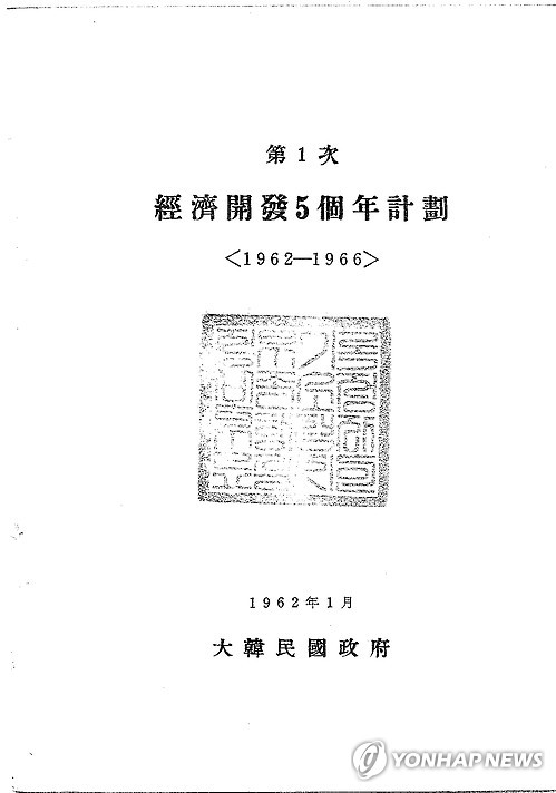 | △ 제1차 경제개발 5개년 계획 (서울=연합뉴스) 국가기록원이 10일 공개한 '제1차 경제개발 5개년 계획(1962~1966)'. 행정자치부 국가기록원은 광복 70년을 맞아 1950년∼1990년대 경제개발계획을 담은 '기록으로 보는 경제개발 5개년 계획' 자료를 오는 11일부터 국가기록원 누리집에서 공개한다고 10일 밝혔다. (국가기록원 제공) |