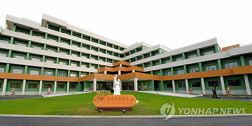 | △ 북한 평양 문수지구의 옥류아동병원 전경. (평양 조선중앙통신=연합뉴스 자료사진) |