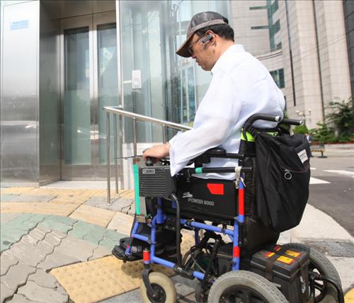 (인천=연합뉴스) 최은지 기자 = 손가락 한 마디 높이의 인도 위 요철에 전자동 휠체어가 '덜컹'했다.