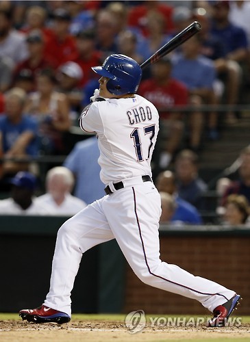 (서울=연합뉴스) 배진남 기자 = 미국프로야구 텍사스 레인저스의 한국인 타자 추신수(33)가 시즌 21번째 2루타를 친 뒤 선제 득점까지 올렸지만 팀의 역전패를 지켜봐야 했다.