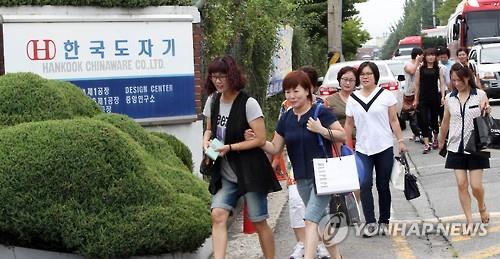 근로자들의 발길이 끊겨 적막했던 청주시 흥덕구 송정동 한국도자기 제1공장 정문에는 이날 오전 7시 40분부터 출근하는 120여명의 직원들로 활기가 넘쳤다.