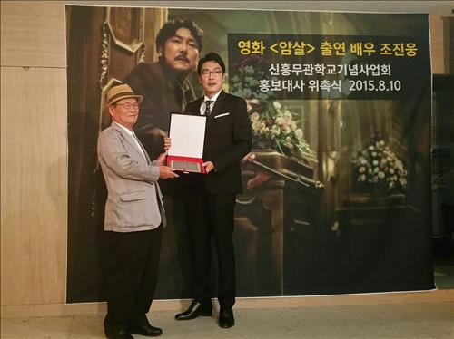 신흥무관학교기념사업회는 10일 서울 동대문구 민족문제연구소에서 위촉식을 열어 "영화 '암살'에서 혼신의 연기를 통해 독립투사의 숭고한 정신과 치열한 삶을 널리 알린 조진웅을 홍보대사로 임명한다"고 밝혔다.