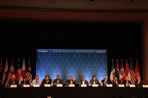 | △ 지난달 TPP 장관급회의 결과를 설명하는 협상 참여국 대표단 |