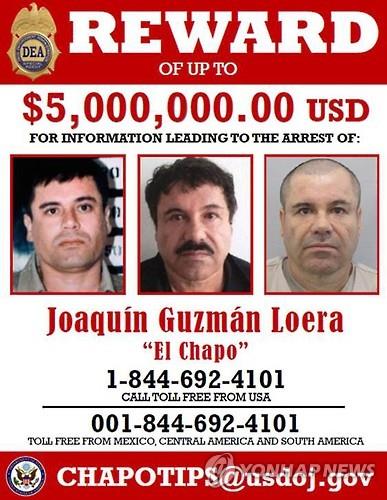 | △ 미국 마약단속국(DEA)은 최근 호아킨 구스만에 대한 정보 제공에 500만달러의 현상금을 내걸었다.(AFP=연합뉴스) |