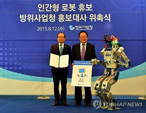 (서울=연합뉴스) 이영재 기자 = 방위사업청은 12일 국내 기술로 개발한 휴머노이드(인간형 로봇) '휴보'를 홍보대사에 임명했다고 밝혔다.