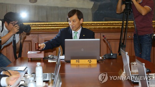 | △ 이주열 한국은행 총재가 13일 오전 서울 중구 소공동 한국은행 본점에서 열린 금융통화위원회 본회의에서 의사봉을 두드리고 있다. |