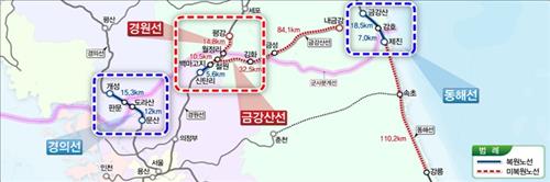 국토부는 또 동해선 강릉∼제진 110㎞ 구간과 금강산선 철원∼군사분계선 32.5㎞ 구간 건설에 대한 사전조사 용역도 올해 12월까지 진행한다.