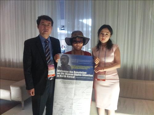 올해에도 탈북 후 두 차례 강제북송을 당한 뒤 한국에 입국한 박정옥 씨와, 그녀의 딸이자 탈북난민인권침해신고센터 소장을 맡고 있는 이한별 소장과 함께 총회를 찾았다.