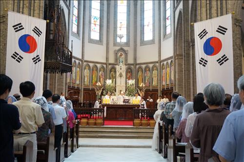 서울 명동대성당에서는 이날 낮 12시 열리는 성모 승천 대축일 미사 때 광복절을 기념하는 의미로 제대 양옆 기둥에 대형 태극기를 게양한다.