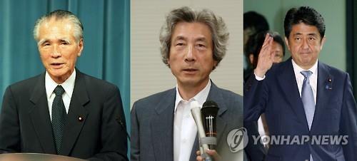| △ 왼쪽부터 1995년 8월 15일 무라야마 도미이치(村山富市) 당시 총리가 도쿄 총리관저에서 전후 50년 담화(무라야마 담화)를 발표하는 모습, 2005년 8월 15일 고이즈미 준이치로(小泉純一郞) 당시 일본 총리가 도쿄 자민당사에서 기자들의 질문에 답하는 모습, 아베 신조 일본 총리가 14일 총리 관저에 들어가는 모습.(교도=연합뉴스) |