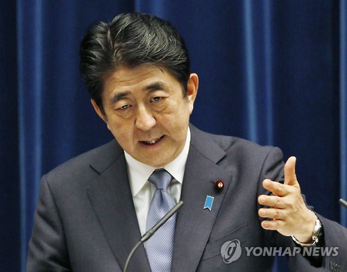| △ 日 전후 70년 담화 발표…회견하는 아베 (도쿄 교도=연합뉴스) 아베 신조(安倍晋三) 일본 총리가 14일 오후 도쿄 총리관저에서 일본의 전후 70년에 관한 담화(일명 아베 담화)를 발표하고 나서 질문에 답하고 있다. 2015.8.14 sewonlee@yna.co.kr |