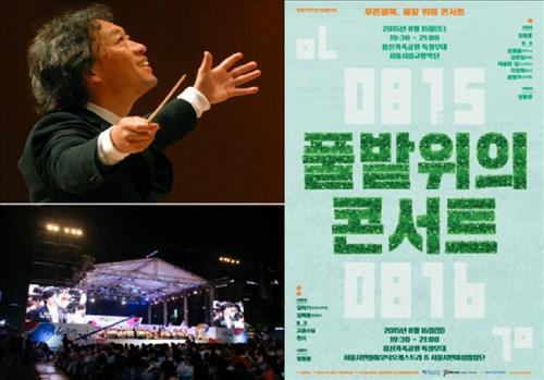 서울시립교향악단은 15일 오후 7시30분 서울 용산가족공원 야외무대에서 '푸른광복, 풀밭 위의 콘서트'라는 제목으로 광복 70주년 기념 음악회를 개최한다.