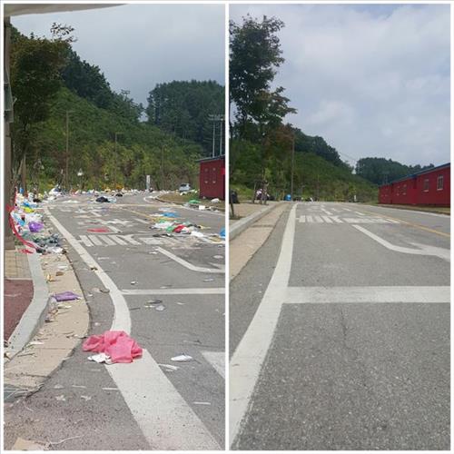 하지만 가요제가 끝난 후 인파가 모두 떠난 행사장 곳곳은 관람객들이 버리고 간 엄청난 양의 쓰레기로 뒤덮였다.