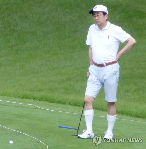 16일 교도통신에 따르면 아베 총리는 이날 야마나시(山梨)현 후지카와구치코마치(富士河口湖町)에 있는 골프장에서 혼다 에쓰로(本田悅朗) 내각관방참여, 다카하시 세이이치로(高橋精一郞) 미쓰이스미토모(三井住友)은행 부행장과 골프를 했다.