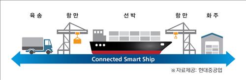 커넥티드 스마트십은 2011년 현대중공업이 세계 최초로 개발한 스마트십 기술에 액센츄어 사의 디지털 기술과 해운산업 정보를 결합한 것이다. 이 시스템이 구축되면 해상 운송부터 하역, 육상 운송에 이르기까지 해운산업의 전체 밸류체인(Value Chain)을 종합 관리할 수 있게 된다.