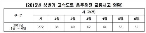 올해 상반기 고속도로 음주사고 272건을 월별로 보면 지속적인 증가세가 확인된다.