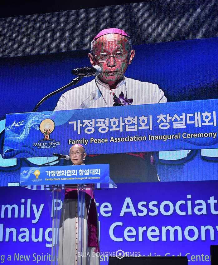 사진은 안토니오 레데스마 대주교가 “가정은 사회를 발달시키는 첫 번째 기구로서 모든 가족이 생명과 사랑의 구상체가 되어야 한다”라면서 가정평화협회 창설을 의미를 기리고 활동을 독려하고 있다.. 2017.12.04. (사진=가정평화협회 제공)