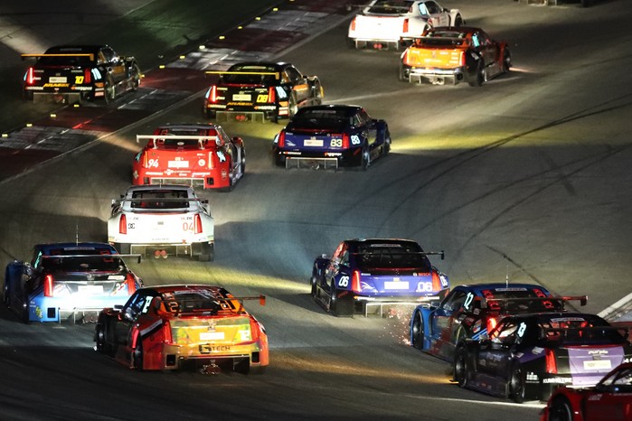 [사진설명] 지난 2019년 인제스피디움에서 열린 나이트 레이스 슈퍼 6000 클래스 결승전에서 레이싱 머신들이 코너를 빠져나가고 있다.