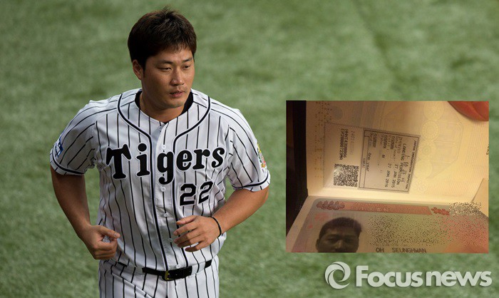 | △ 오승환이 그라운드를 뛰며 몸을 풀고 있다. <사진출처=포커스뉴스 DB> 오승환 선수 측이 '일요서울'에 제시한 여권 사진. <사진제공=일요서울> |