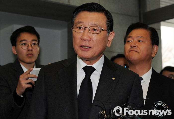 | △ 취재진 질문에 답하는 박삼구 회장 |