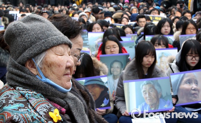 올해 마지막 수요일이었던 어제, 여느 수요시위 때와 다르게 구름 인파가 일본대사관 앞에 모였습니다. 일본군 위안부 합의발표 후 첫 수요시위인 만큼 피해 할머니를 향한 격려와 위로의 자리가 마련됐는데요. 이용수 할머니는 "공식적인 사죄와 법적 배상을 요구할 것"이라며 울분을 토했습니다.
