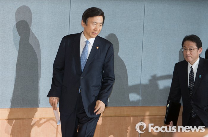 | △ 회견장 들어서는 한,일 외교 수장 |
