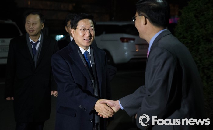 (서울=포커스뉴스) 여야 선거구 획정 협상이 무산되어 현행 선거구 획정 법적 시한이 지나버린 1일 오전 서울 관악구 중앙선거관리위원회 산하 선거구획정위원회를 찾은 구기성 입법차장이 관계자와 악수를 하고 있다.