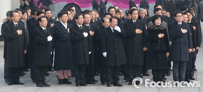 (서울=포커스뉴스) 병신년(丙申年) 새해 첫 날인 1일 오전 동작구 국립서울현충원에서 박원순 서울시장이 현충탑 참배에 앞서 국기에 대한 경례를 하고 있다.