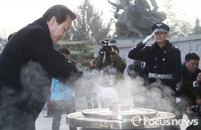 (서울=포커스뉴스) 병신년(丙申年) 새해 첫 날인 1일 오전 동작구 국립서울현충원에서 김무성 새누리당 대표가 현충탑 참배를 하고 있다.