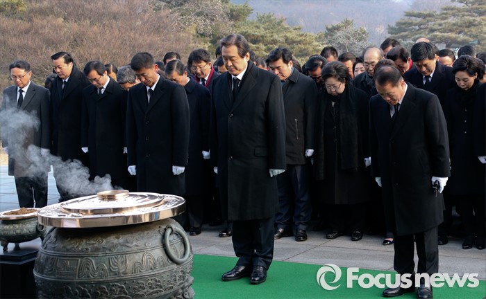 (서울=포커스뉴스) 병신년(丙申年) 새해 첫 날인 1일 오전 동작구 국립서울현충원에서 김무성 새누리당 대표 등 의원들이 현충탑 참배를 하고 있다.