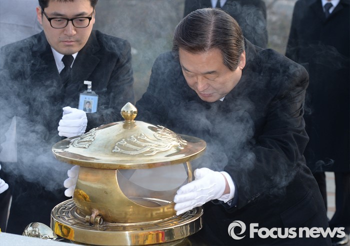 (서울=포커스뉴스) 병신년(丙申年) 새해 첫 날인 1일 오전 동작구 국립서울현충원에서 김무성 새누리당 대표가 김대중 전 대통령 묘역 참배를 하고 있다.