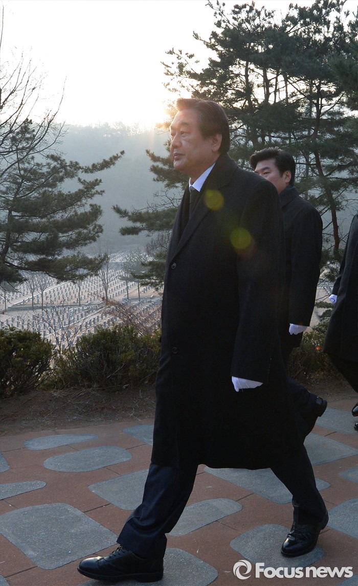 (서울=포커스뉴스) 병신년(丙申年) 새해 첫 날인 1일 오전 동작구 국립서울현충원에서 김무성 새누리당 대표가 김대중 전 대통령 묘역 참배를 위해 이동하고 있다.