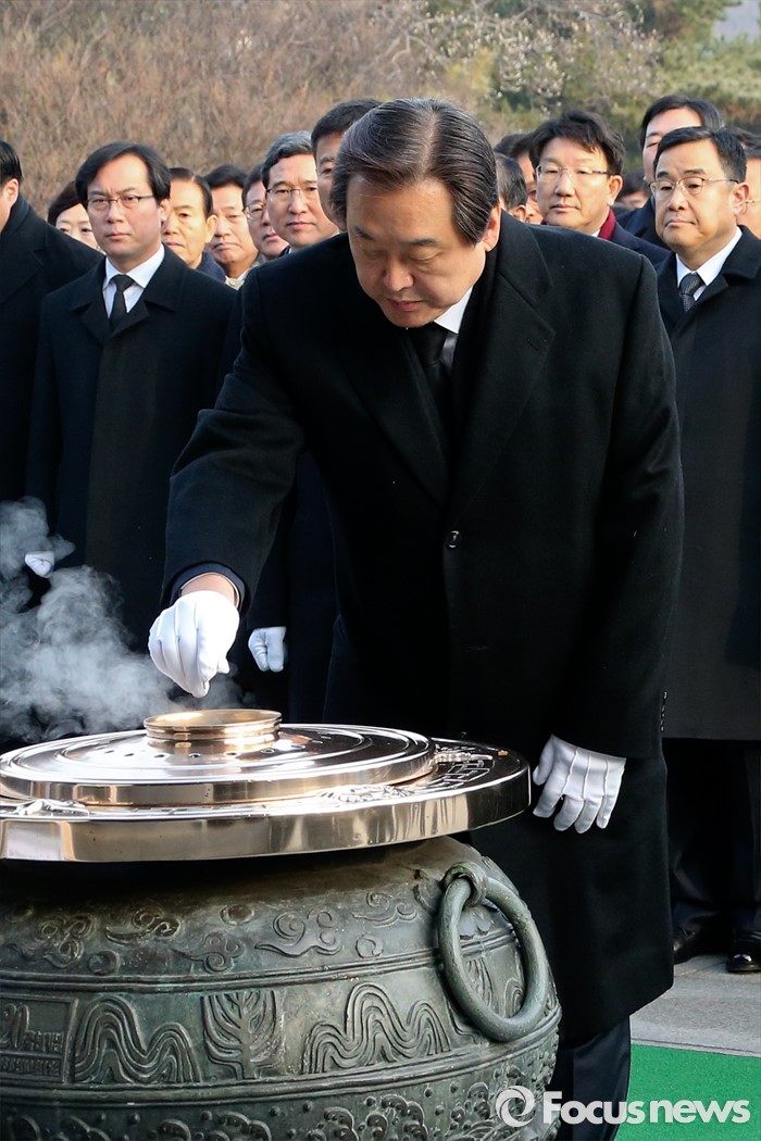 (서울=포커스뉴스) 병신년(丙申年) 새해 첫 날인 1일 오전 동작구 국립서울현충원에서 김무성 새누리당 대표 등 의원들이 현충탑 참배를 하고 있다.