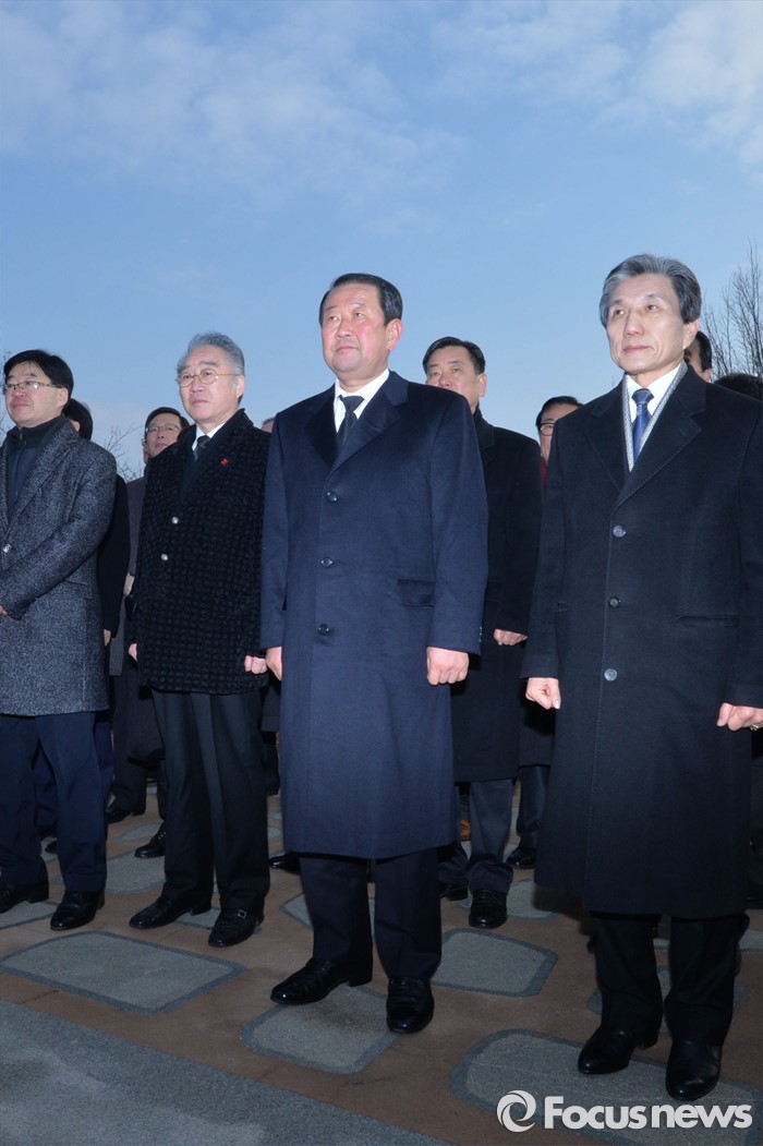 (서울=포커스뉴스) 병신년(丙申年) 새해 첫 날인 1일 오전 동작구 국립서울현충원에서 통합신당을 추진 중인 박주선 무소속 의원이 김대중 전 대통령 묘역 참배를 하고 있다.