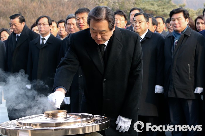 (서울=포커스뉴스) 병신년(丙申年) 새해 첫 날인 1일 오전 동작구 국립서울현충원에서 김무성 새누리당 대표 등 의원들이 현충탑 참배를 하고 있다.