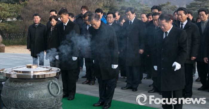 (서울=포커스뉴스) 병신년(丙申年) 새해 첫 날인 1일 오전 동작구 국립서울현충원에서 문재인 더불어민주당 대표 등 의원들이 현충탑 참배를 하고 있다.