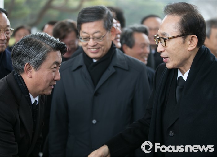 (서울=포커스뉴스) 병신년(丙申年) 새해 첫 날인 1일 오전 동작구 국립서울현충원에서 현충탑 참배를 마친 이명박(오른쪽) 전 대통령이 이동관 전 홍보수석과 대화하고 있다.