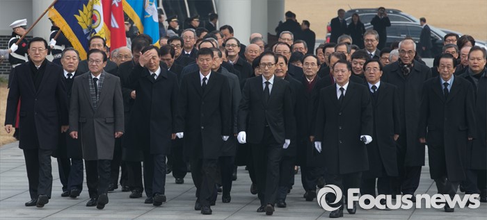 (서울=포커스뉴스) 병신년(丙申年) 새해 첫 날인 1일 오전 동작구 국립서울현충원에서 이명박 전 대통령이 현충탑 참배를 위해 이동하고 있다.