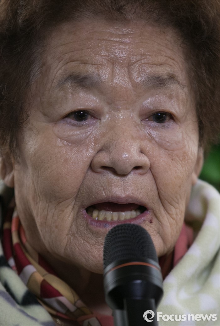 (광주=포커스뉴스) 병신년(丙申年) 새해 첫 날인 1일 오후 김군자 할머니가 경기도 광주 일본군 위안부 피해자 쉼터 나눔의 집을 방문한 원유철 새누리당 원내대표 등 의원들과의 간담회에서 발언하고 있다.