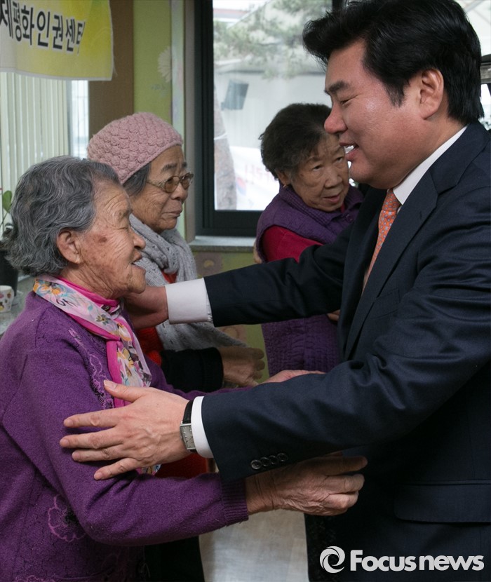 (광주=포커스뉴스) 병신년(丙申年) 새해 첫 날인 1일 오후 박옥선(왼쪽) 할머니가 경기도 광주 일본군 위안부 피해자 쉼터 나눔의 집을 방문한 원유철 새누리당 원내대표와 간담회를 마친 뒤 포옹하고 있다.