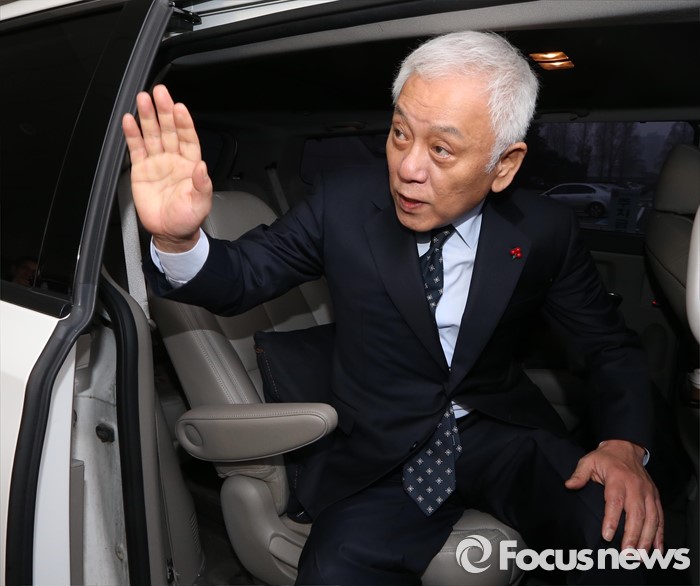(서울=포커스뉴스) 김한길 더불어민주당 전 공동대표가 3일 오전 서울 여의도 국회 정론관에서 탈당 선언 기자회견을 마치고 차량에 탑승해 인사를 하고 있다.