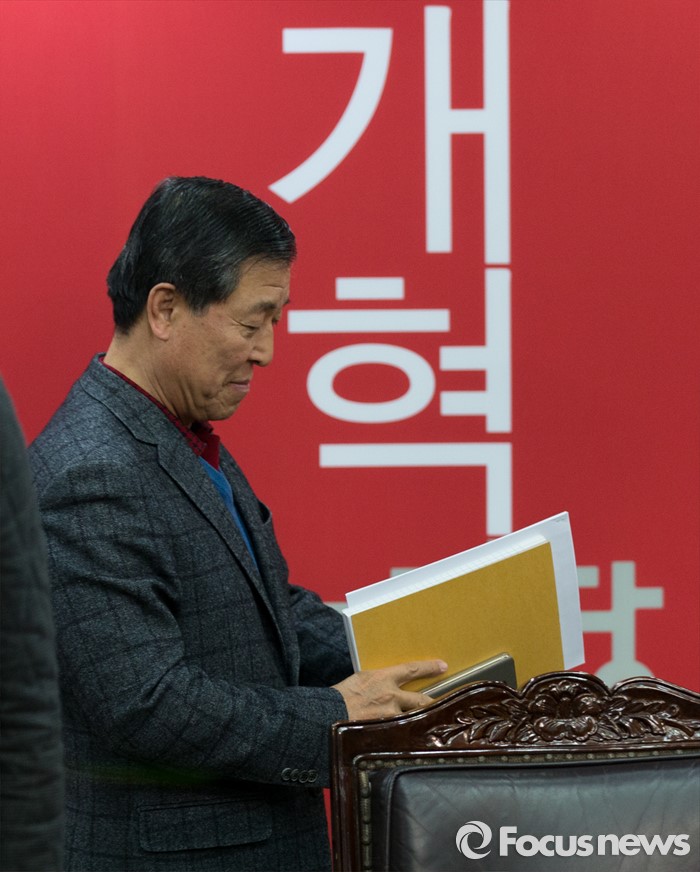 (서울=포커스뉴스) 3일 오후 서울 여의도 새누리당사에서 황진하 위원장이 공천제도특별위원회 전체회의를 주재를 위해 자리로 향하고 있다.