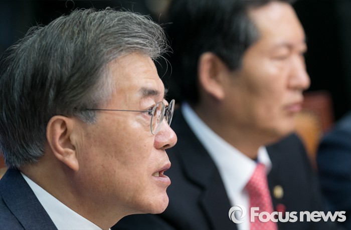(서울=포커스뉴스) 문재인 더불어민주당 대표가 4일 오전 서울 여의도 국회에서 열린 최고위원회의에 참석해 모두발언을 하고 있다.